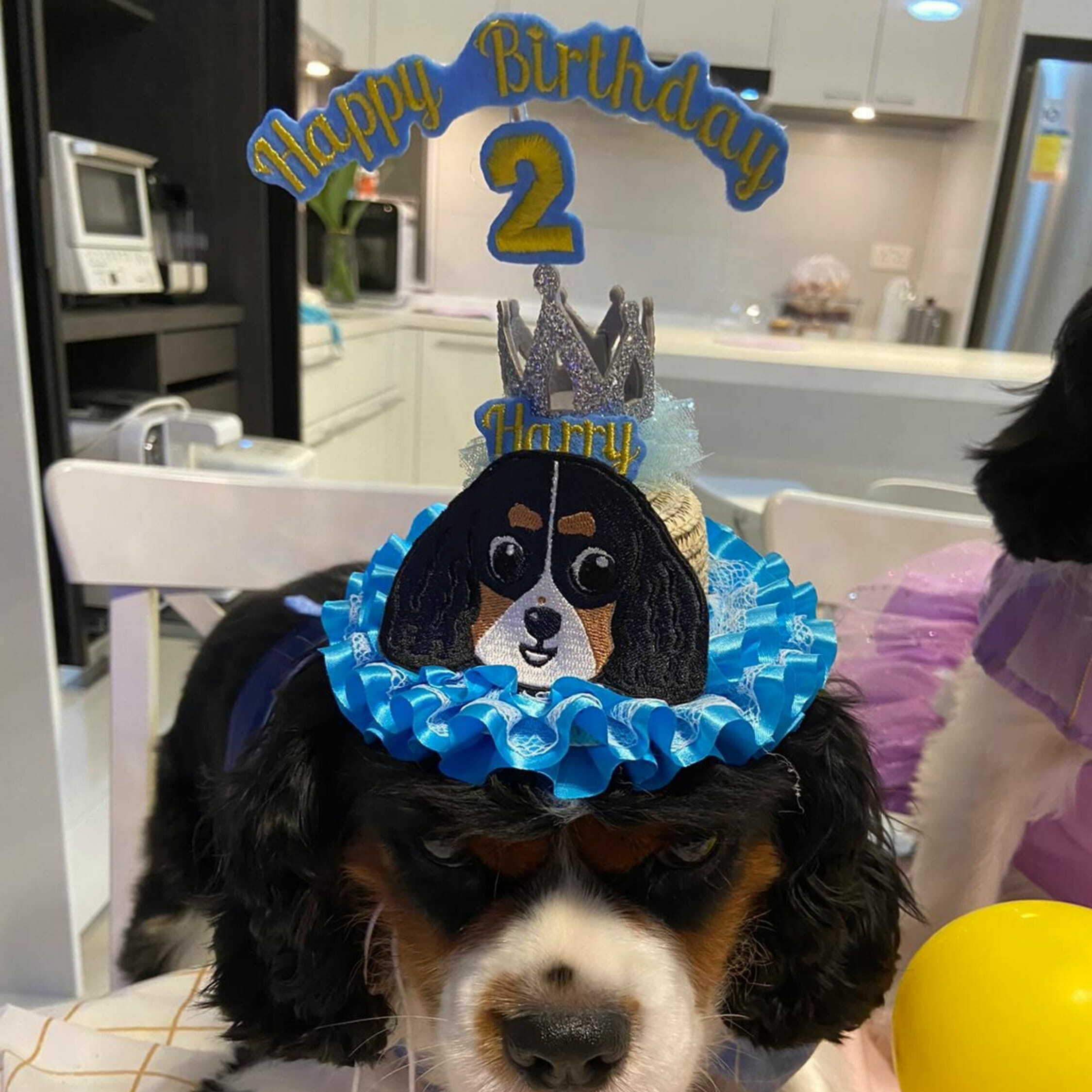 ^If you want to pre-order the name of your pet in an embroidery patch put it onto the birthday hat. Please remark your requested name before the check-out process.