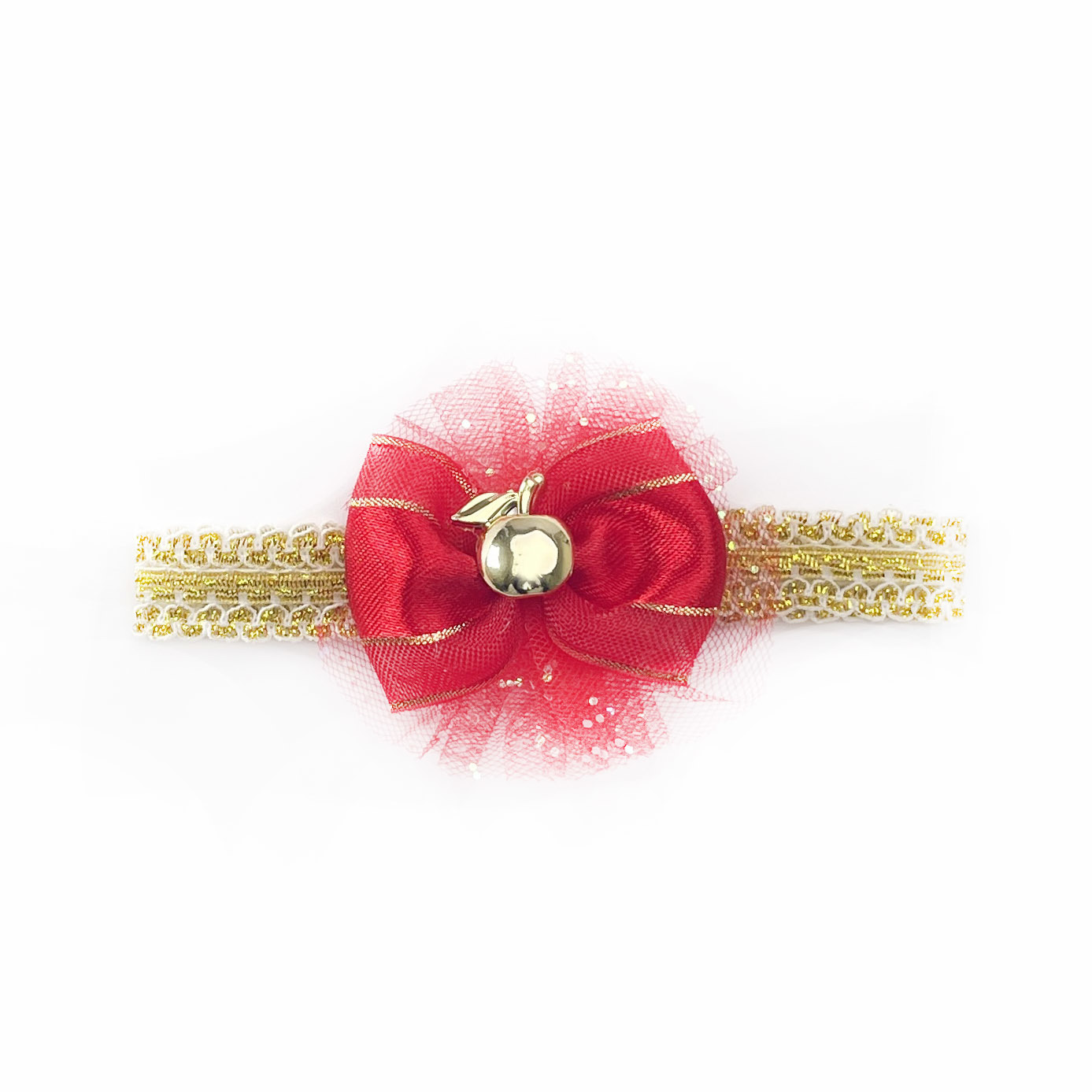 -蝴蝶結手工頭帶配上可愛的金蘋果