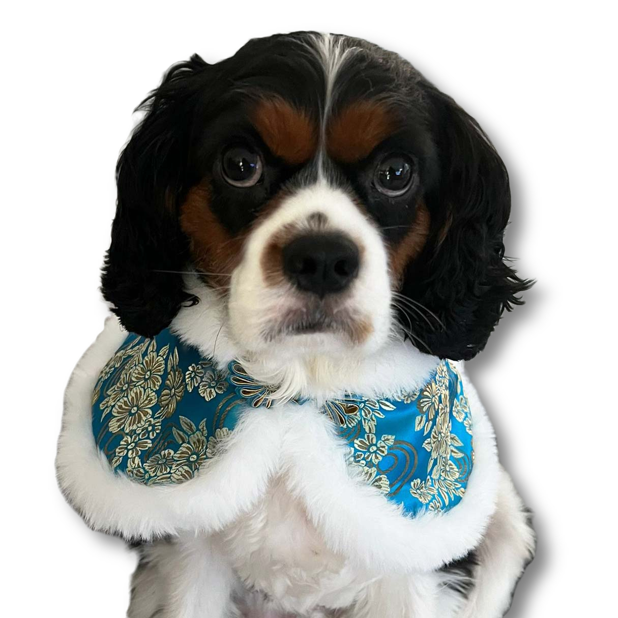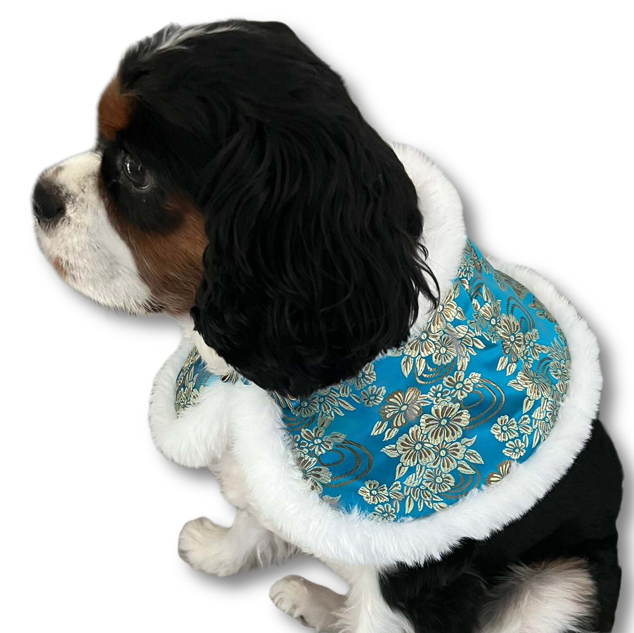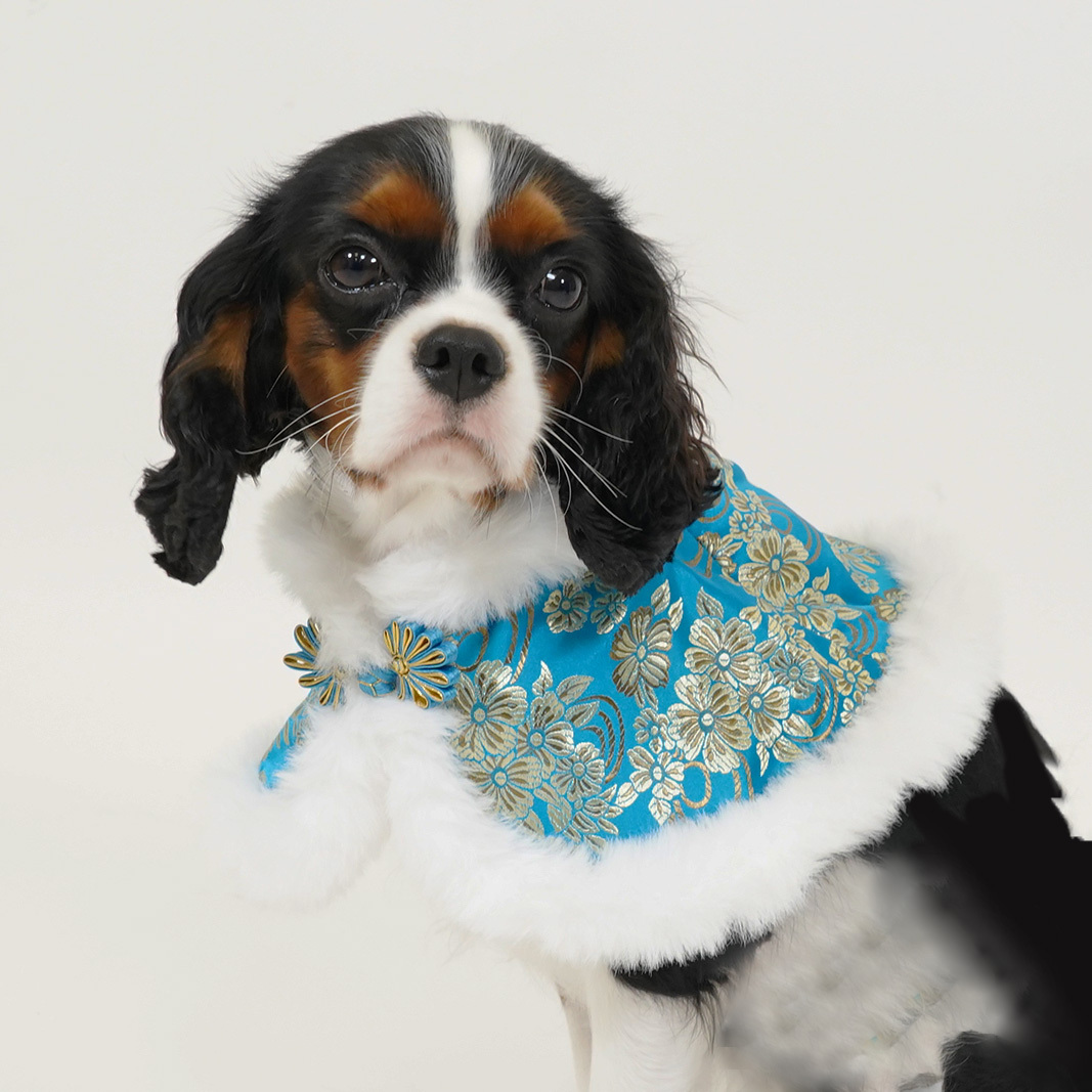 • With a blue color damask pattern lining the collar with white fleece material, looks  noble and fashionable, creating a festive atmosphere