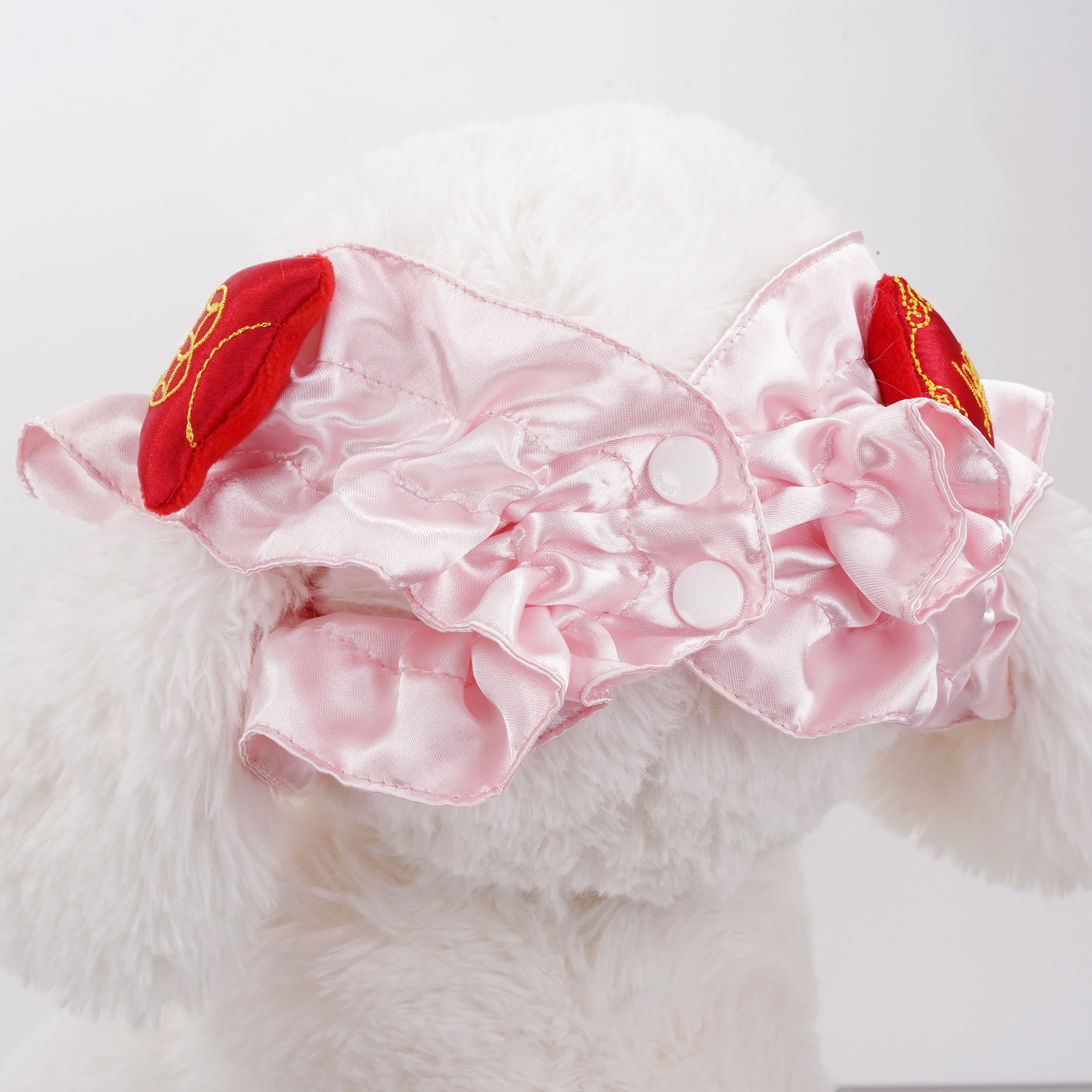 - Put the pet's ears on both sides of the lotus leaf cover, then pullthe headband off the back of the head and buckle the button
