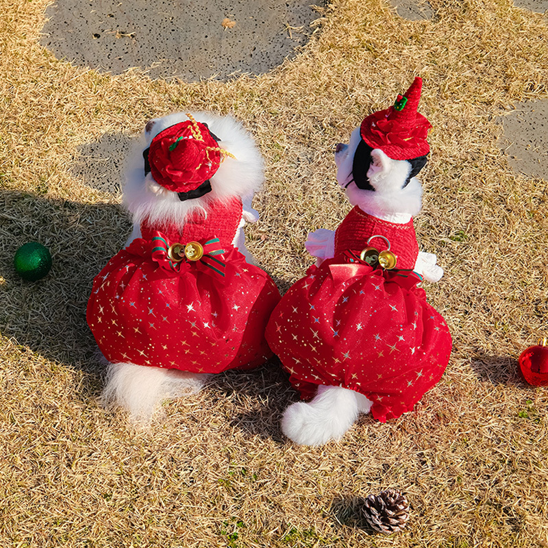 - Red color harness with christmas bell and ribbon