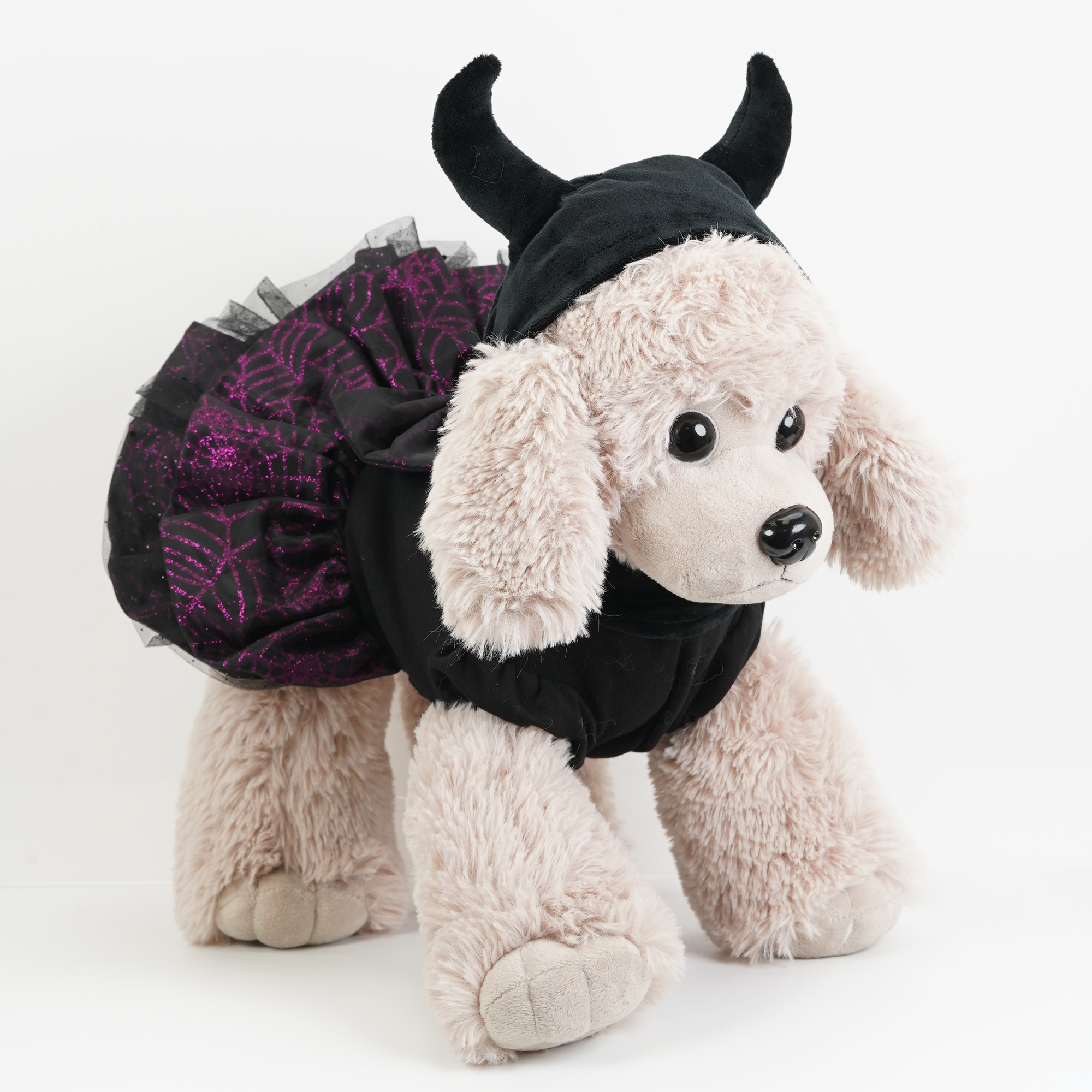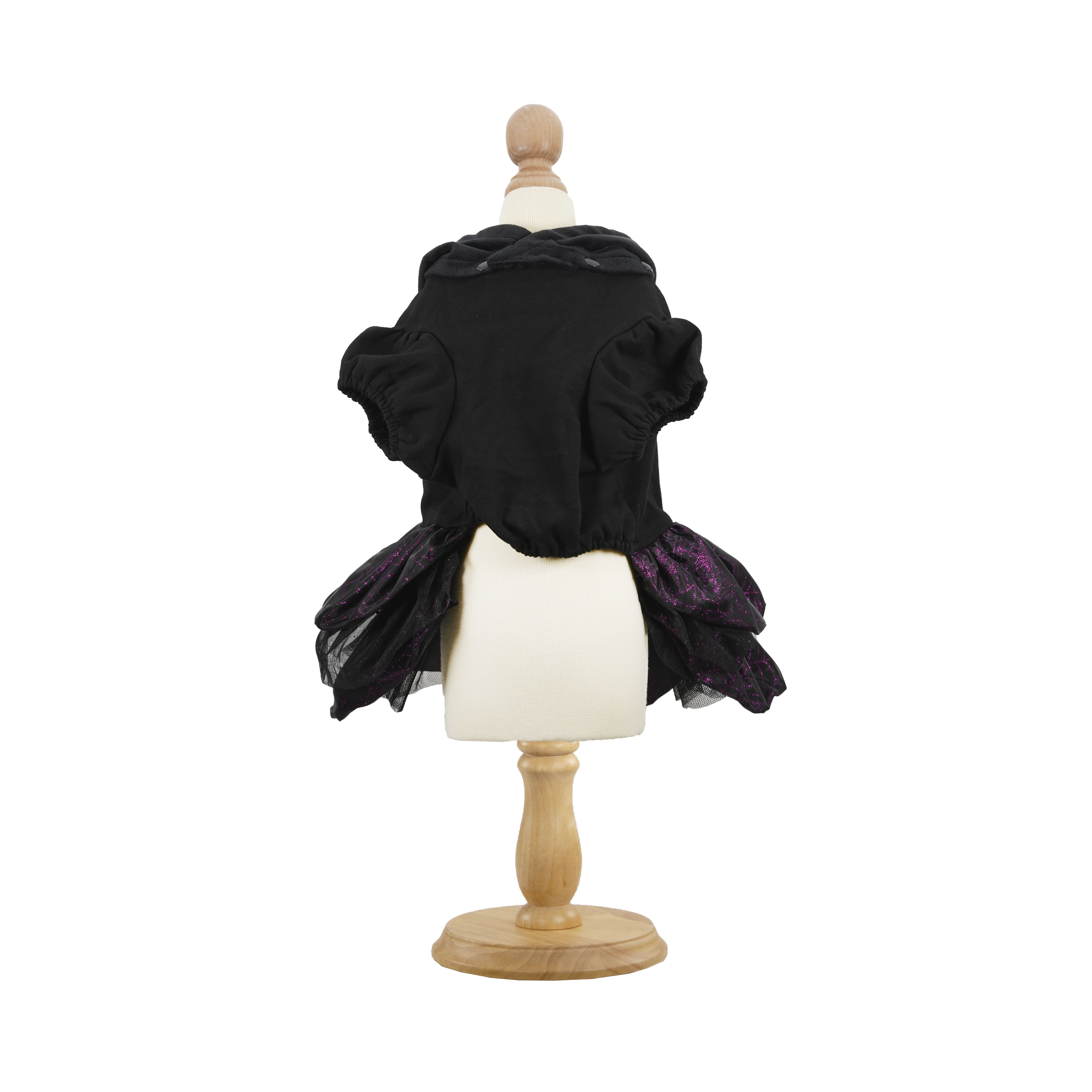 -Spider web pattern in dark purple satin fabric in layering tutu dress design
