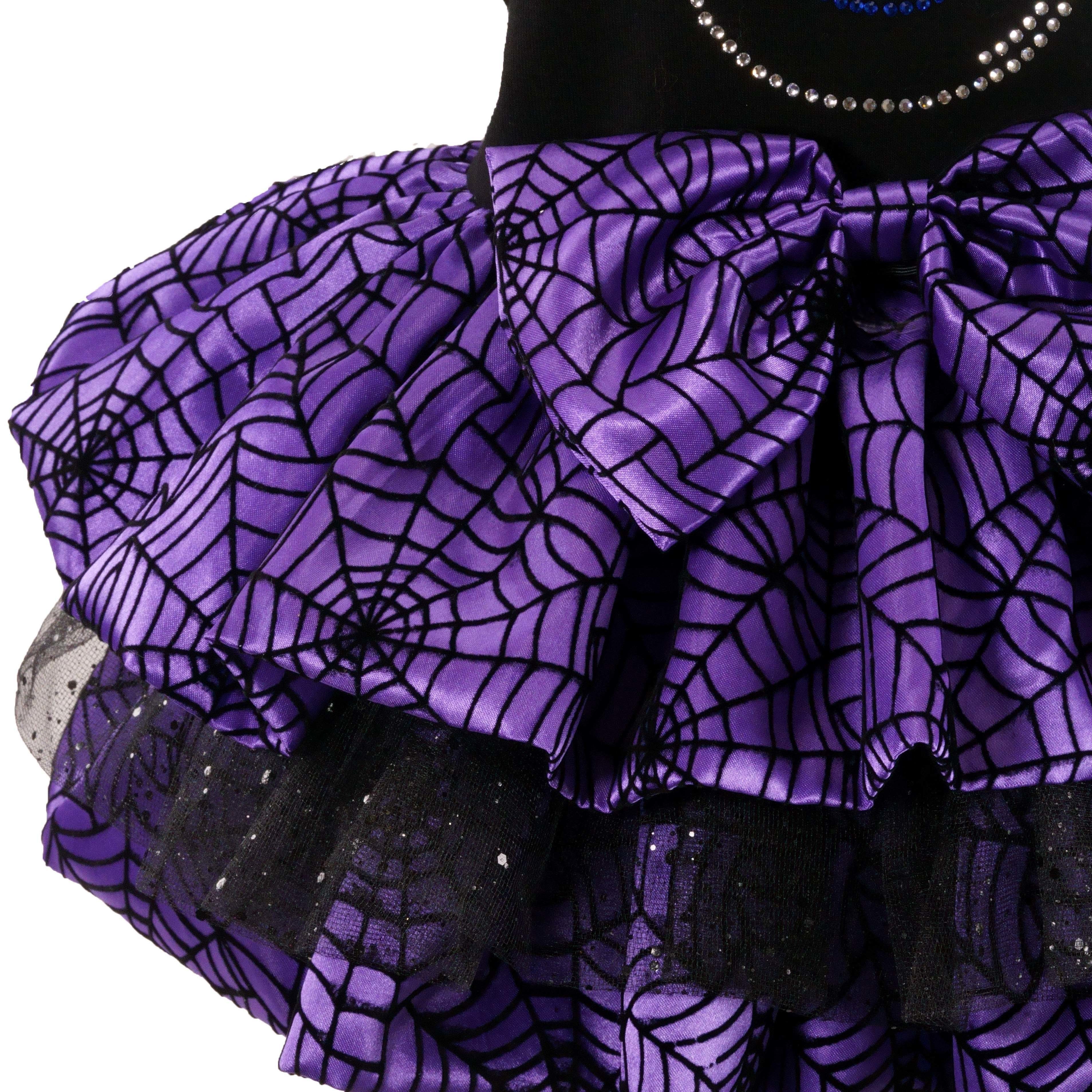 -Spider web pattern in violet color satin fabric in layering tutu dress design