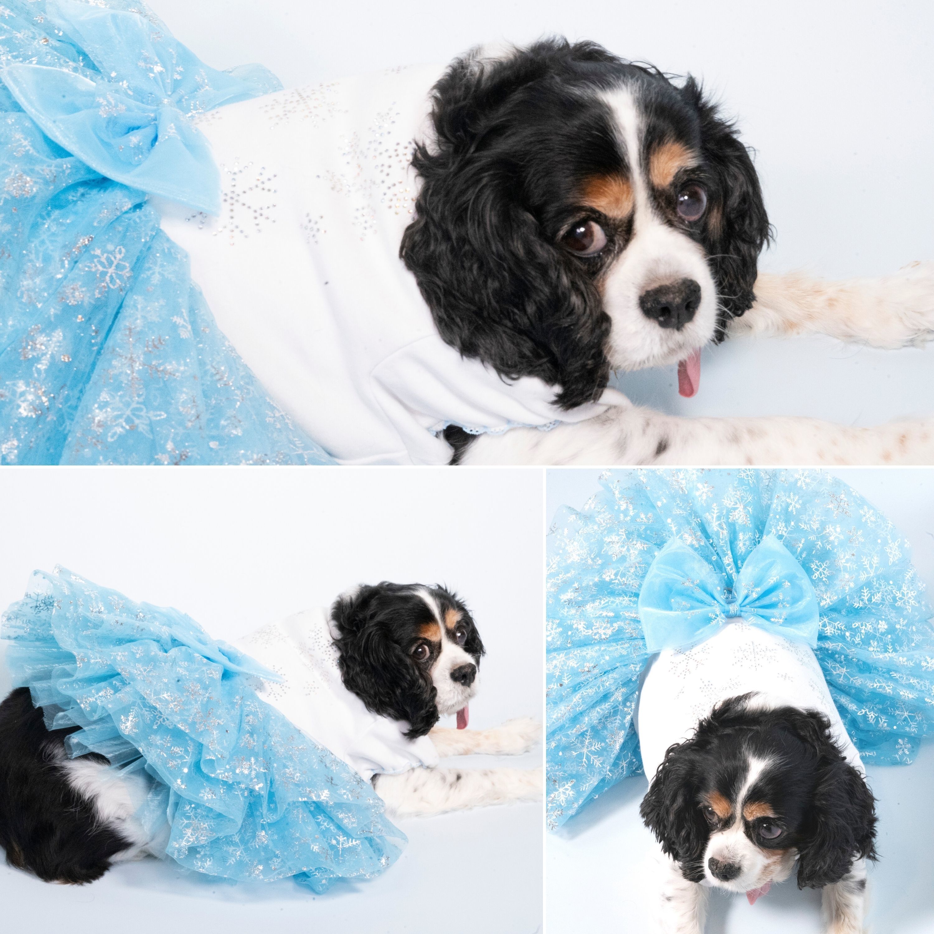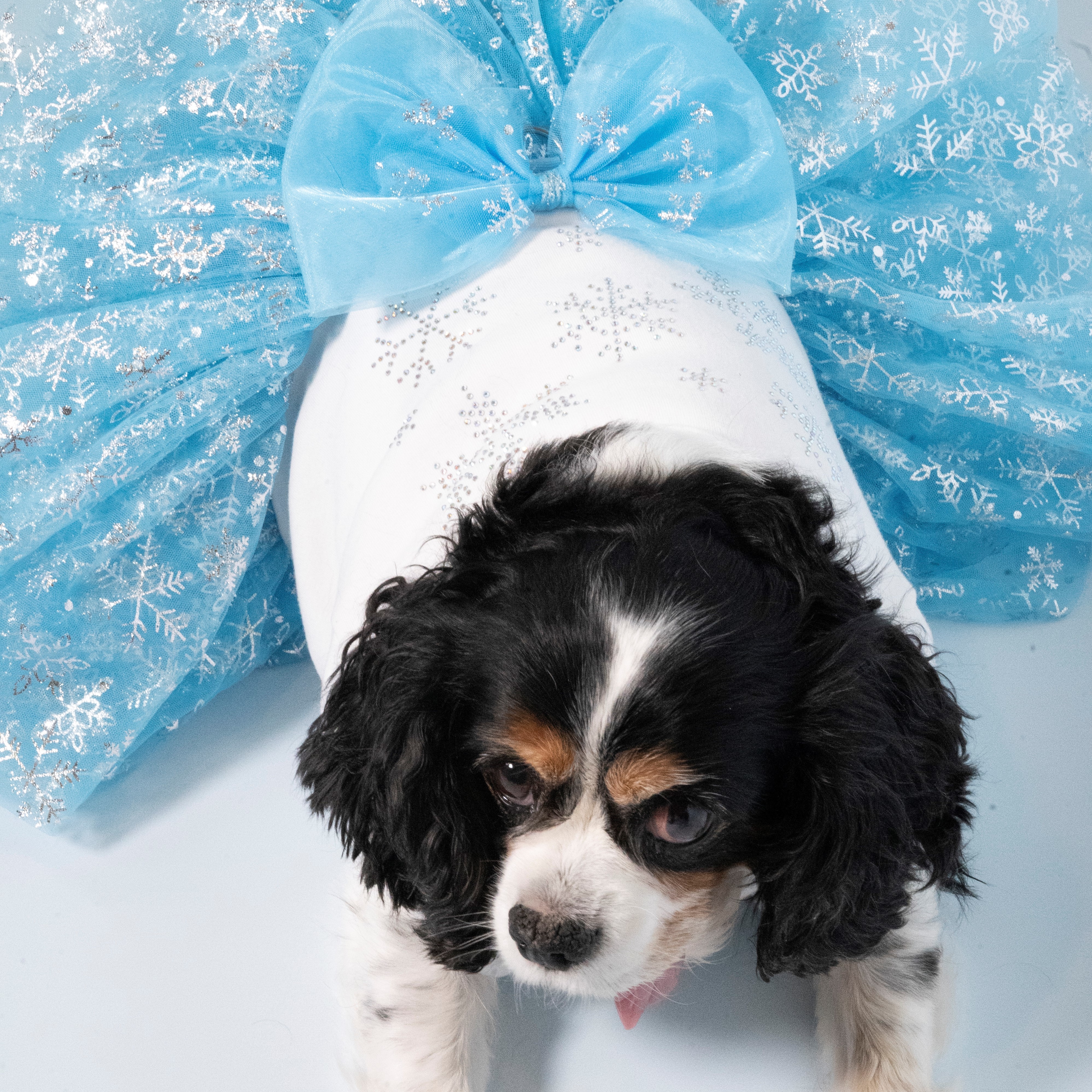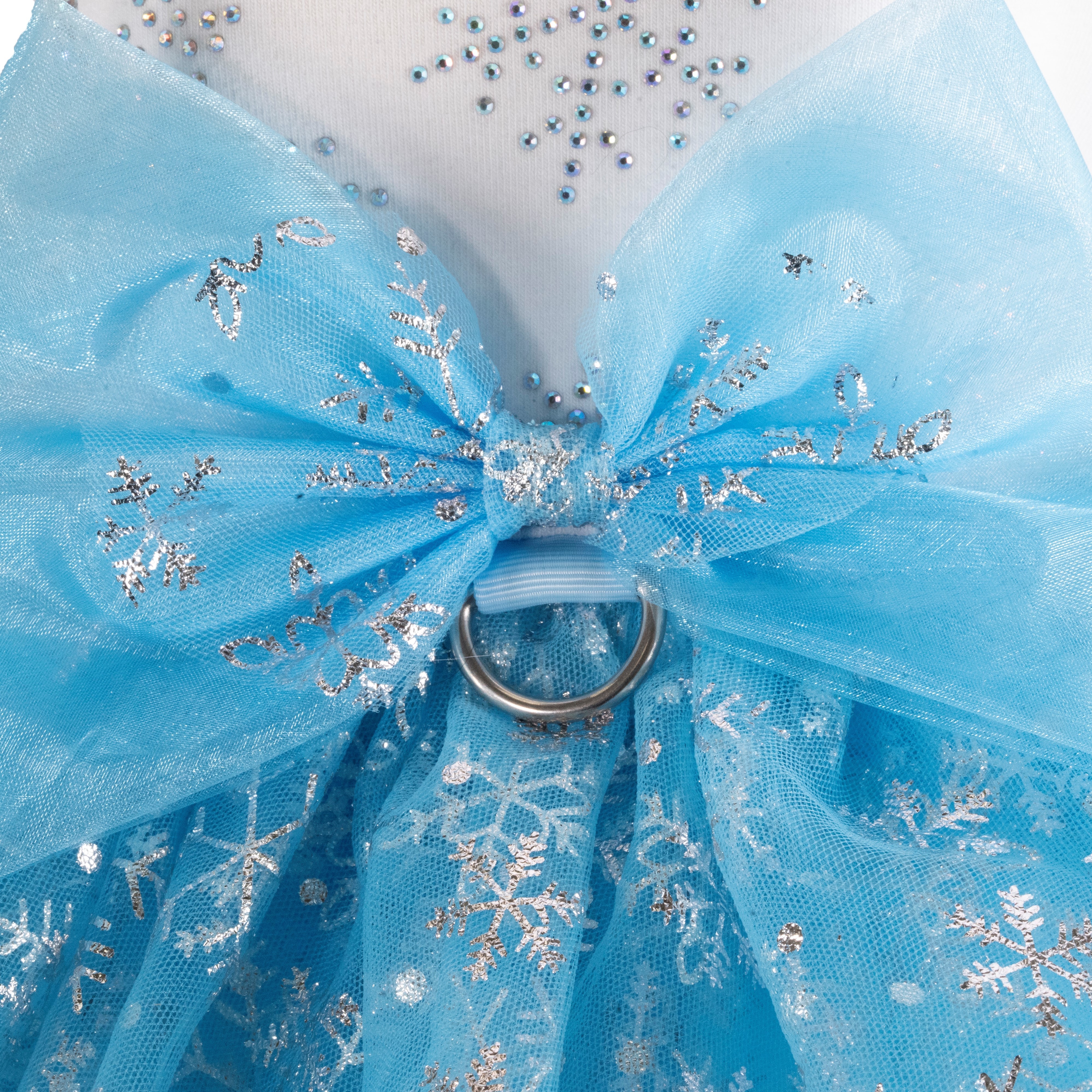 -白いTシャツにきらめくスノーフレークデザインのラインストーンが施されたチュチュドレス