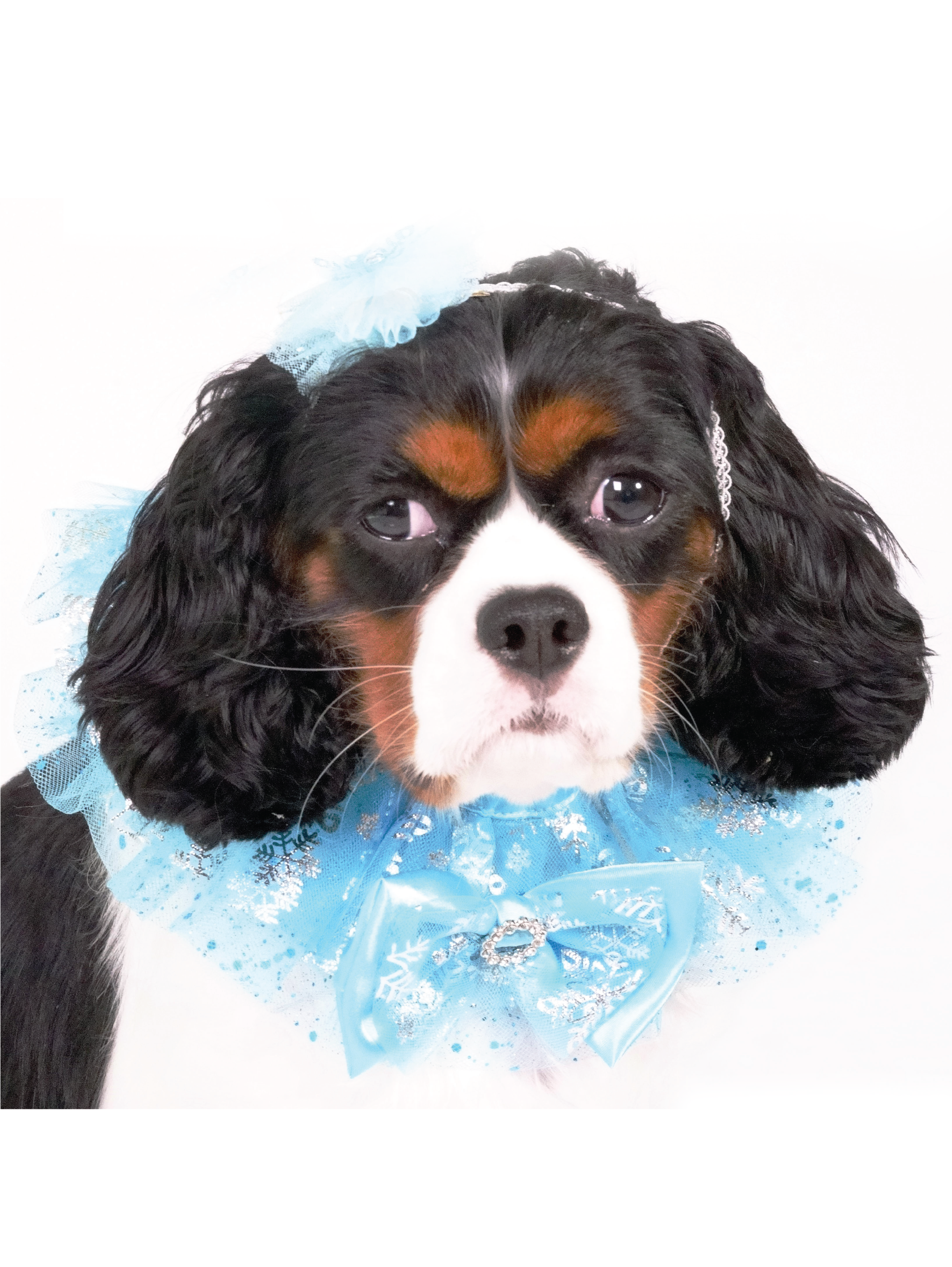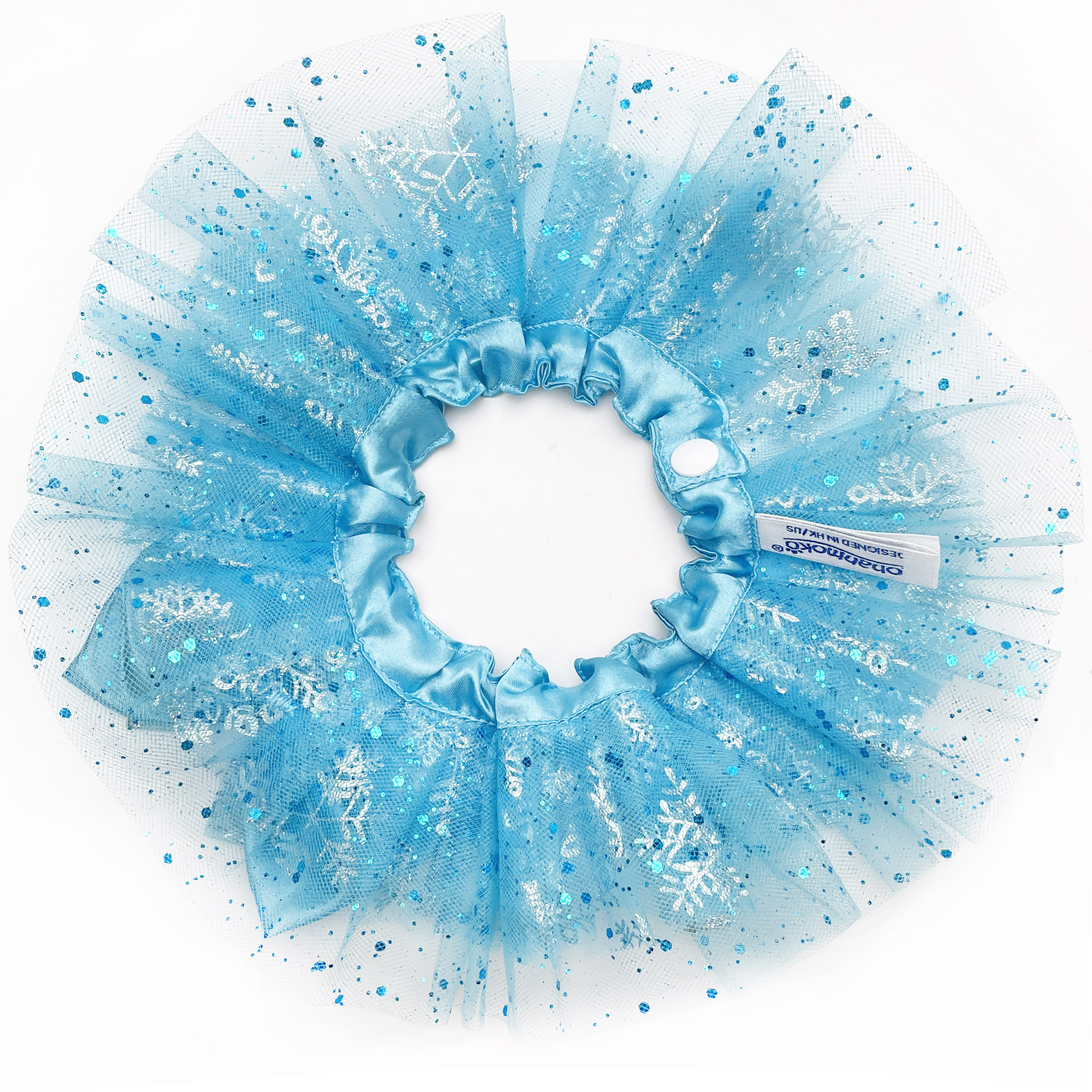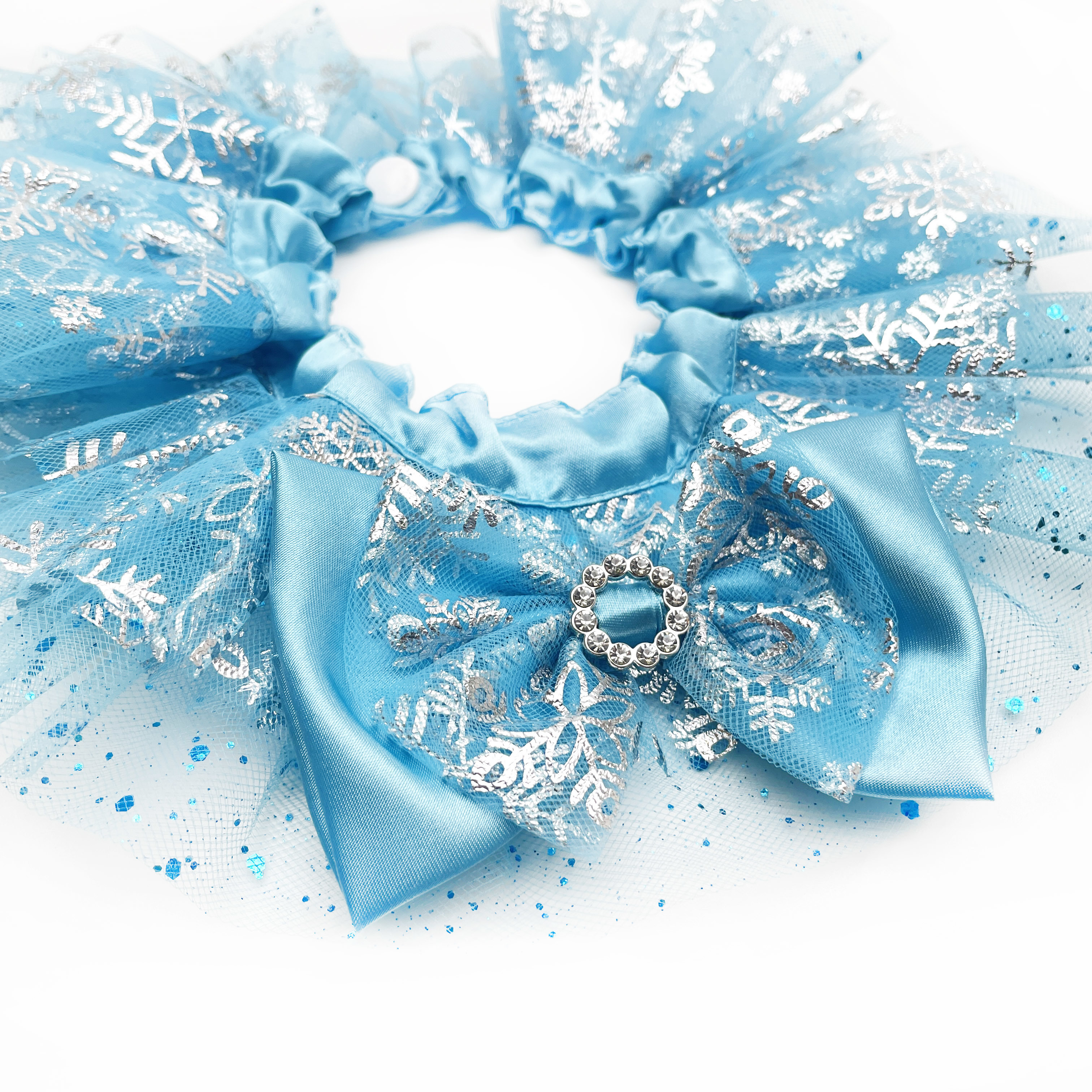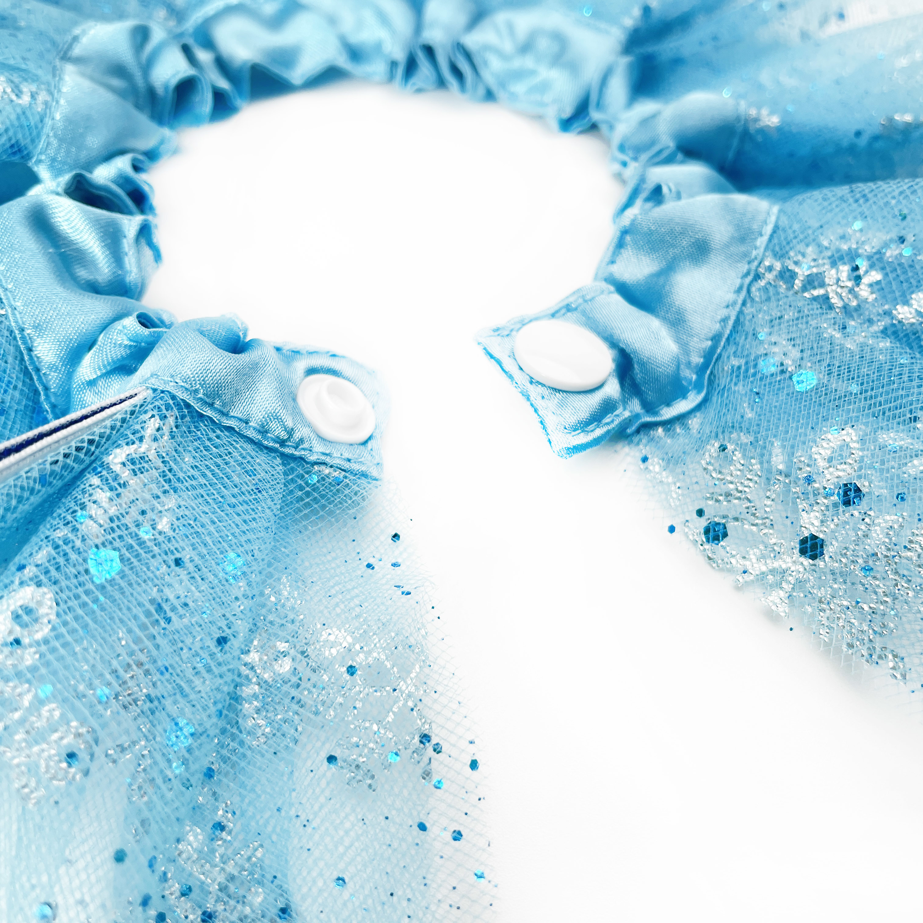• Using light blue chiffon fabric with snowflakes pattern in layering collar design